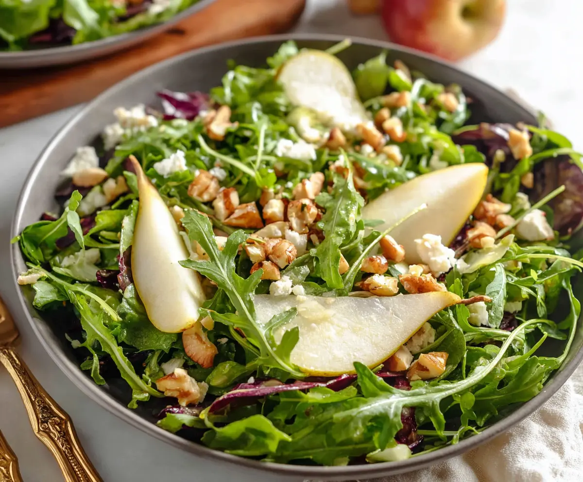 This Arugula Pear Salad is a fresh and tasty mix! With peppery arugula, sweet pears, and crunchy nuts, it’s perfect for brightening any meal.