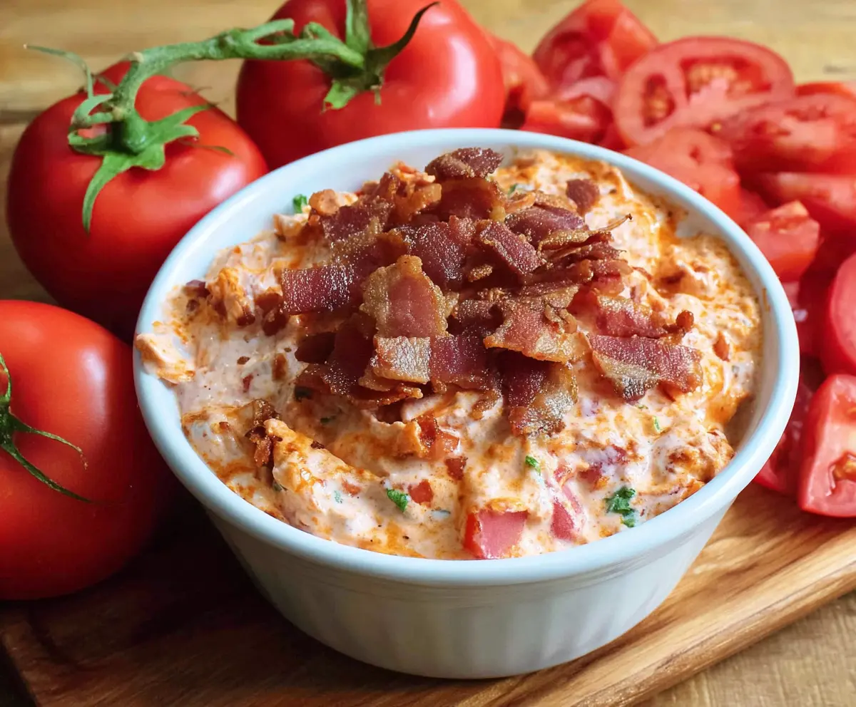 Enjoy this creamy, savory Bacon Tomato Dip as a flavorful appetizer or snack that’s sure to be a crowd-pleaser!