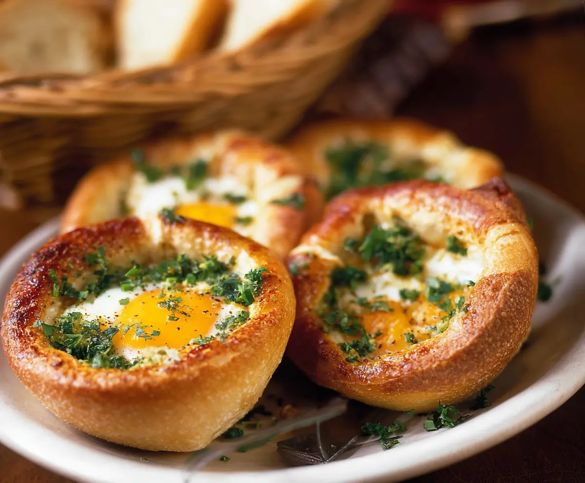These Baked Eggs In A Basket are a delightful way to start your day—crispy bread, perfectly baked eggs, and a touch of freshness with parsley. Yum!