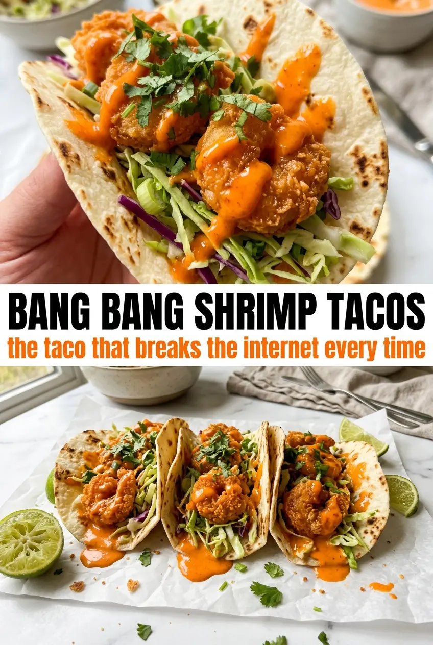 The trick is keeping the shrimp dry before dredging and frying them in hot oil long enough to turn the coating deeply golden. The bang bang sauce works best when it’s whisked together ahead of time, then added right after frying so the shrimp stay crisp at the edges while still getting fully coated. A little lime juice sharpens the sauce and keeps the whole taco from tasting flat.