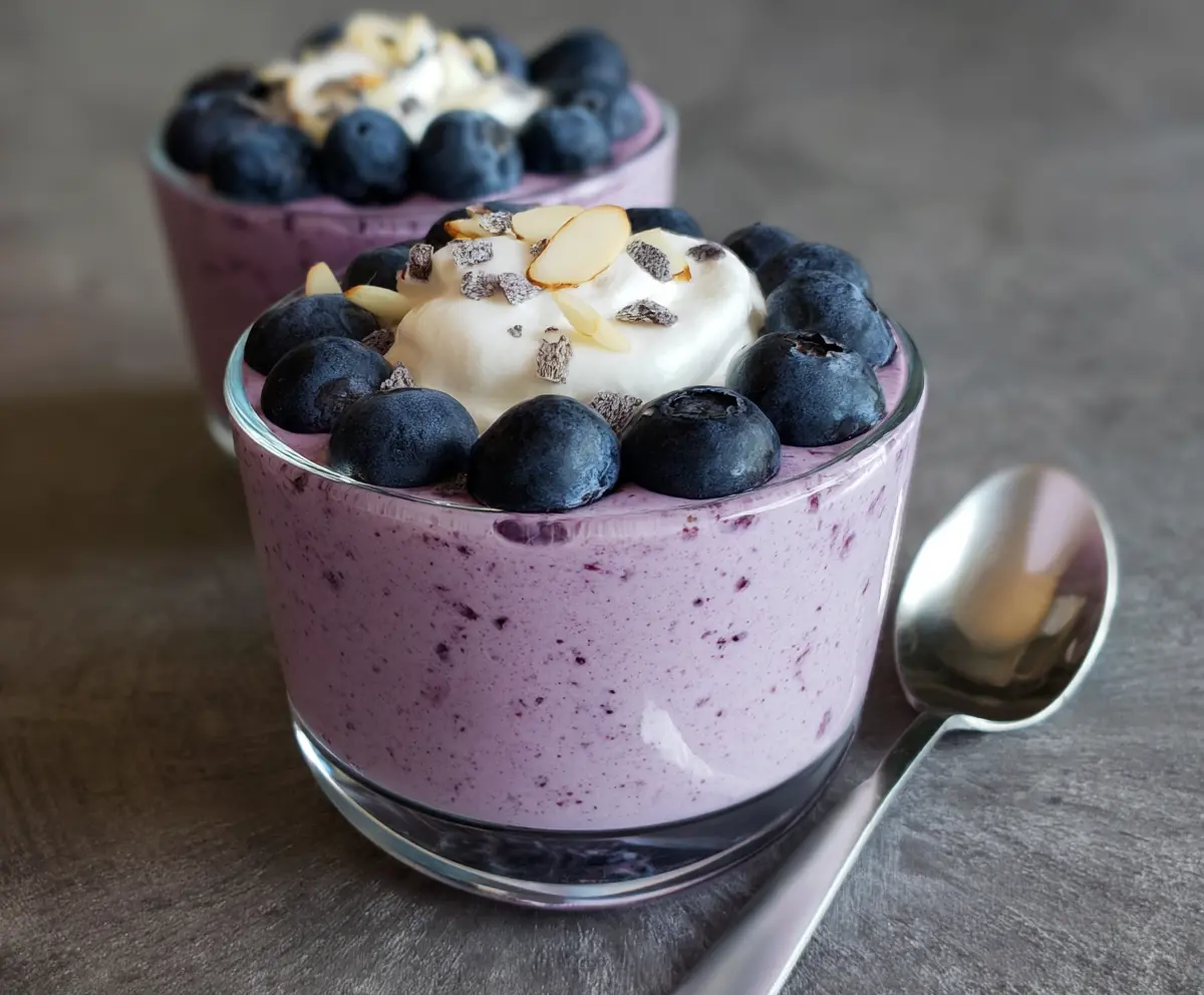Enjoy your refreshing and creamy Blueberry Cottage Cheese Mousse—perfect any time of the year!