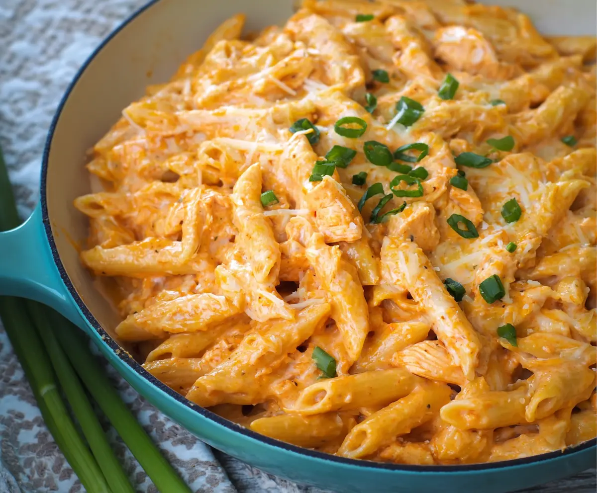 This Buffalo Chicken Alfredo Penne is a creamy and spicy pasta dish that’s sure to please! It mixes tender chicken with a rich and cheesy sauce, all tossed with penne pasta.