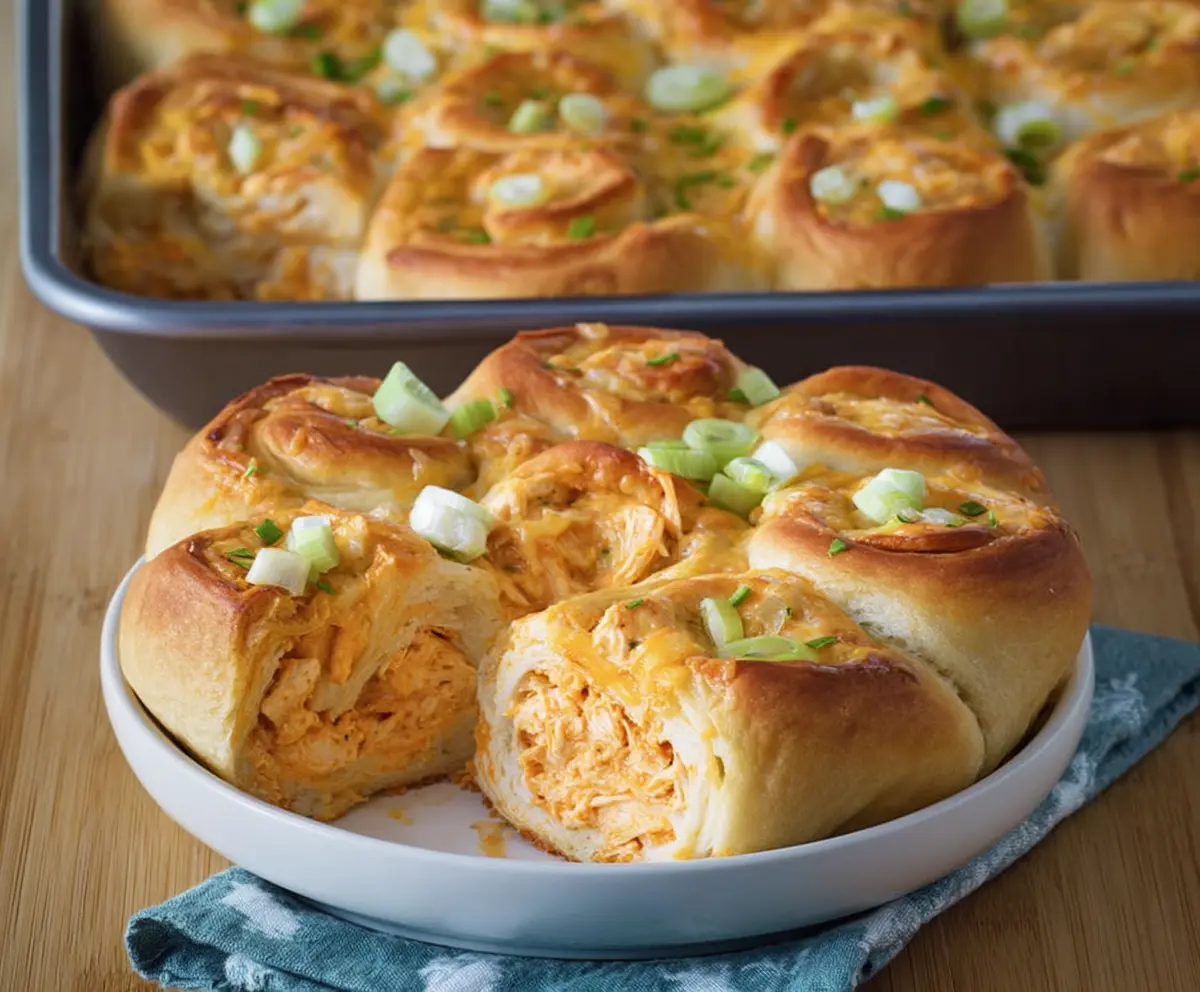 This Buffalo Chicken Crescent Roll Bake is a tasty twist on pizza! Flaky crescent rolls wrap around spicy chicken and cheese, making it a perfect party dish.