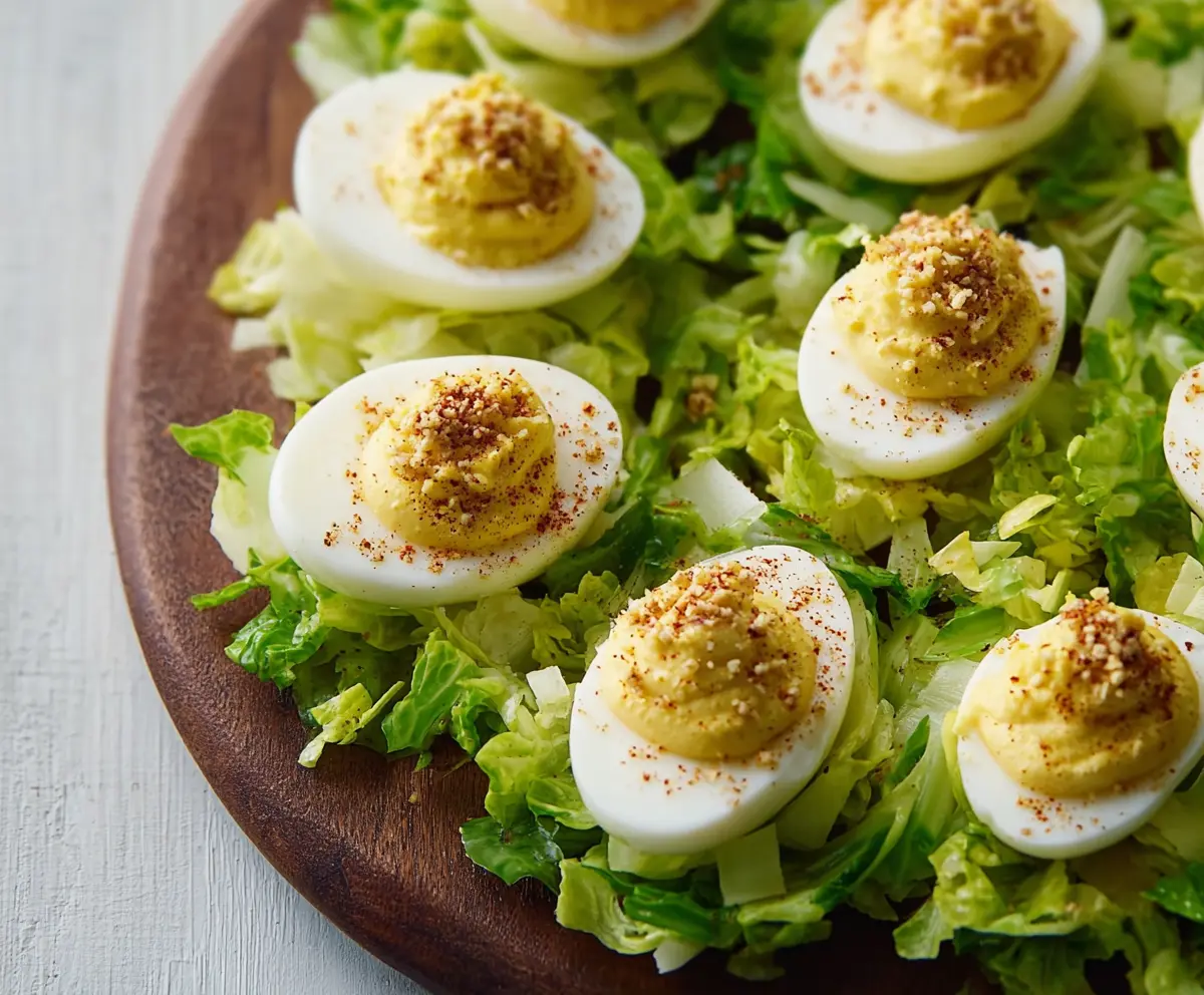 Serve these yummy Caesar Deviled Eggs right away on a bed of crisp lettuce. Enjoy this tasty twist on a classic appetizer!