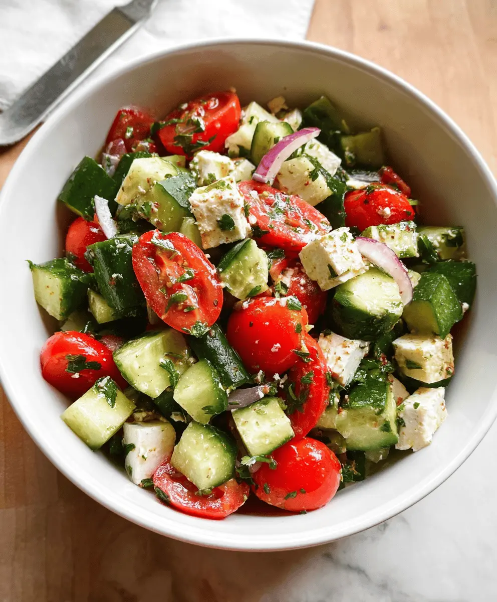 Refreshing Cucumber Feta Salad with Lemon Dressing