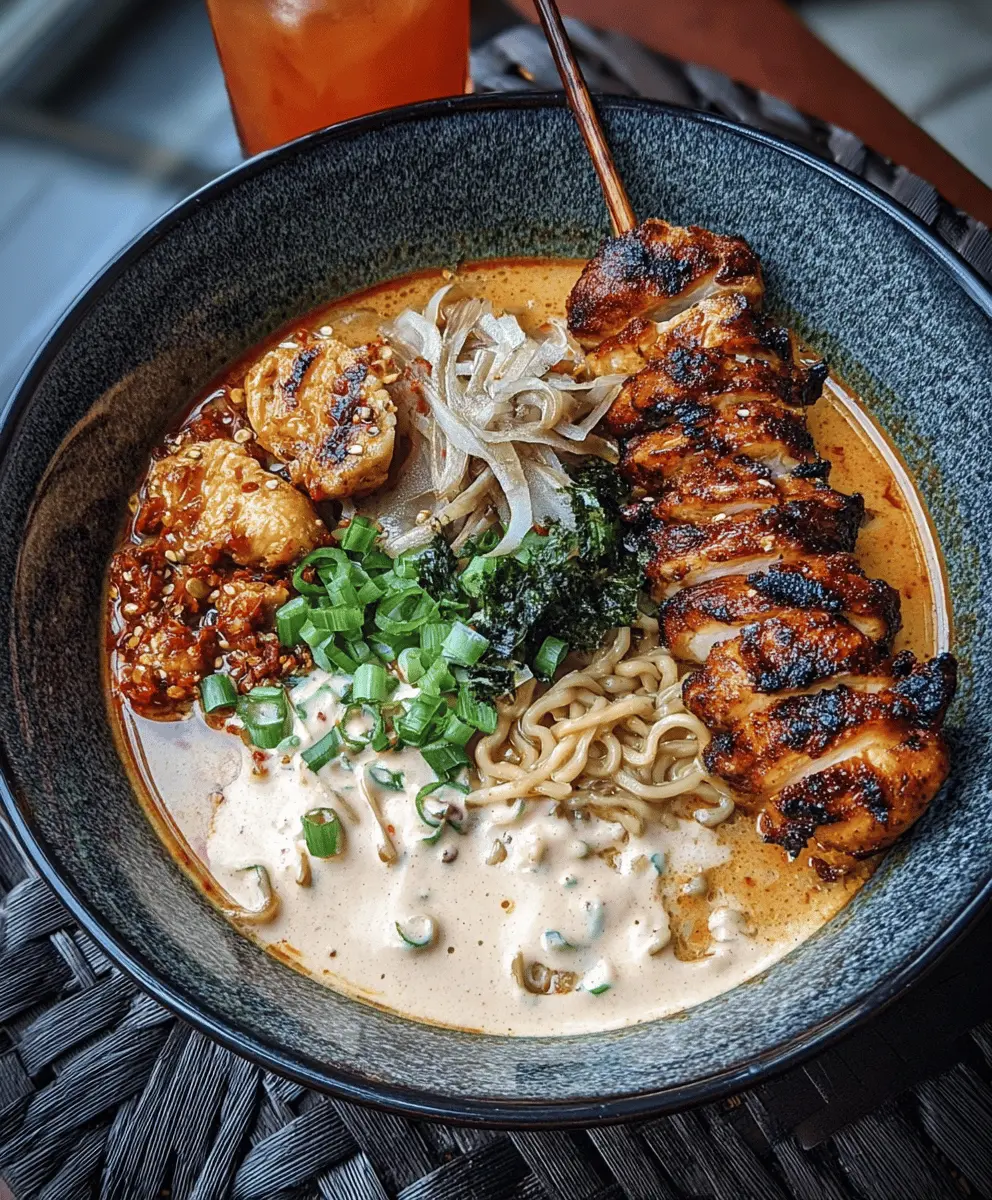 Fiery Chicken Ramen with Creamy Garlic Sauce Recipe