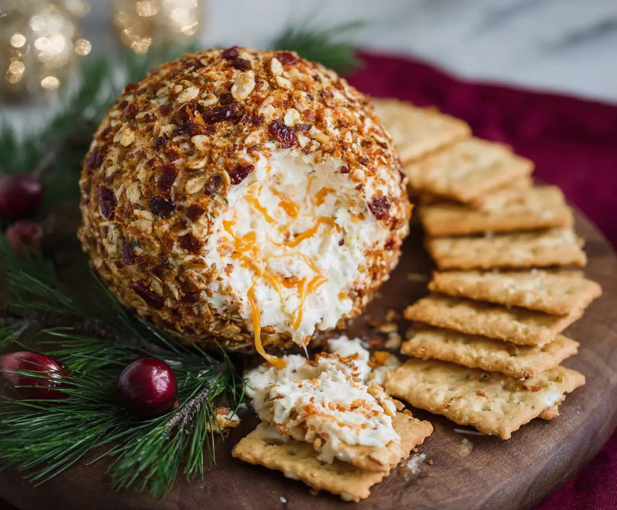 This cheese ball pairs beautifully with a variety of crackers, bread slices, or fresh vegetable sticks like celery and bell pepper for dipping. You can also try it with apple or pear slices for a sweet contrast!
