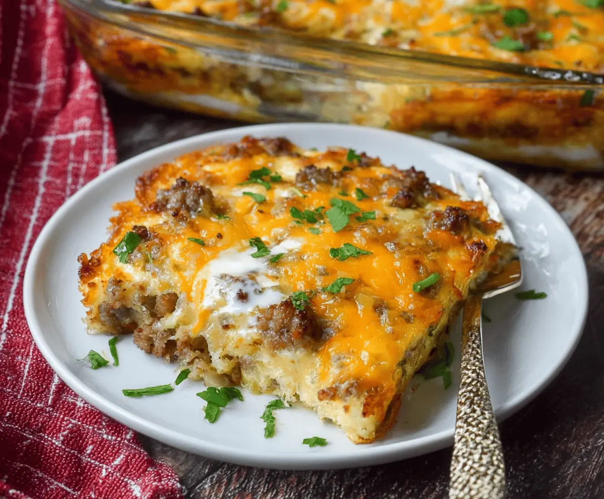 This Cheesy Sausage and Hashbrown Breakfast Casserole is a morning winner! It combines savory sausage, crispy hashbrowns, and gooey cheese all in one dish.
