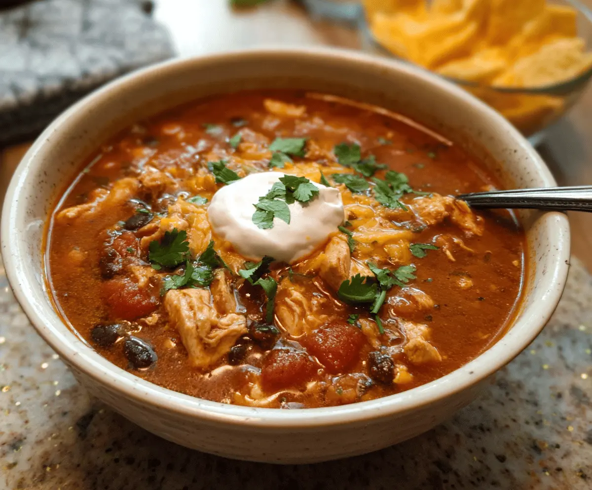 This Chicken Chili packs a hearty punch with tender chicken, beans, and a blend of spices. It’s perfect for warming you up on a chilly day!