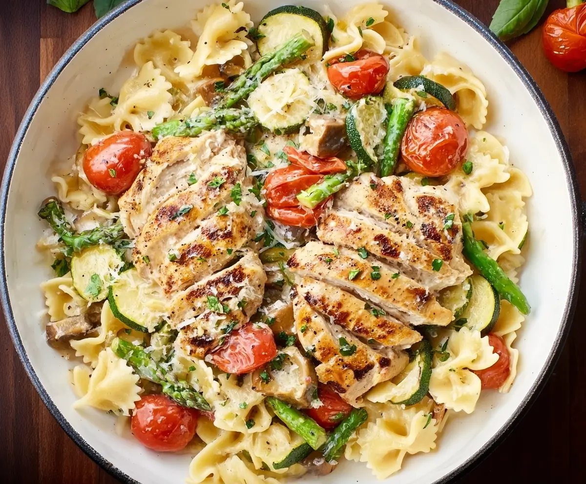 Finally, feel free to garnish your Chicken Primavera with additional fresh basil or parsley, and maybe a sprinkle of Parmesan cheese on top for extra flavor. Serve it immediately and enjoy this colorful and tasty meal!