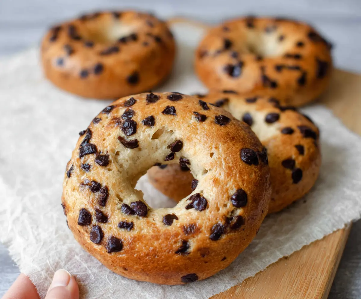 While the bagels are still wet from boiling, sprinkle some extra mini chocolate chips on top. They’ll stick perfectly!