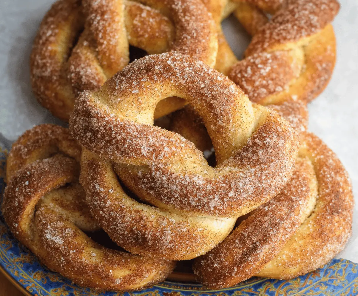 Once baked, remove the pretzels from the oven. Brush them again with the remaining melted butter and sprinkle a little more cinnamon sugar on top if you like. Allow them to cool slightly before diving in. Enjoy your delicious warm pretzels!