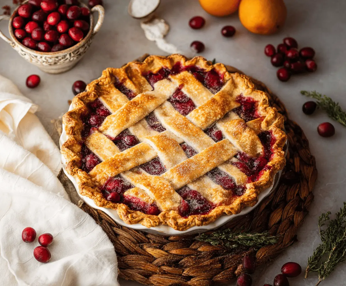 Enjoy your vibrant, perfectly tart cranberry pie with a flaky, golden lattice crust! Happy baking! 🍰