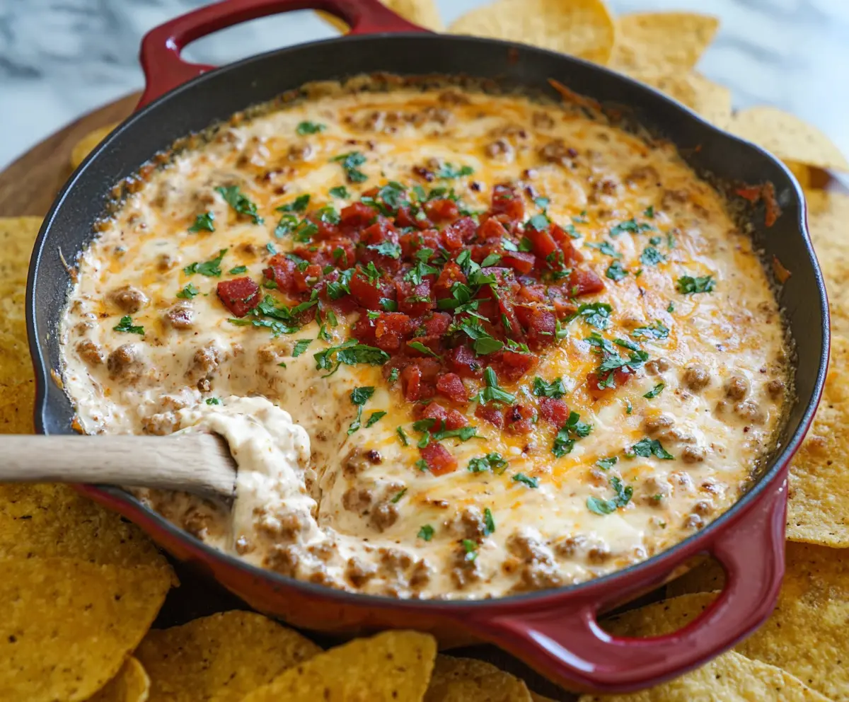 This creamy and rich sausage dip is a winner for game nights or parties! With just a few tasty ingredients like cream cheese and spicy sausage, it’s super easy to whip up.