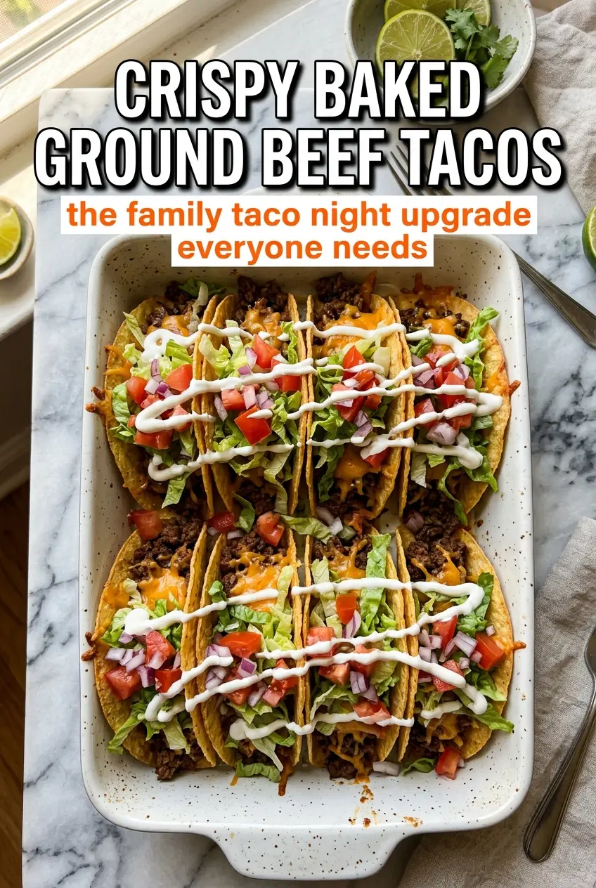Crispy Baked Ground Beef Tacos with golden shells and savory, oven-crisped edges are perfect for a fast taco night.
