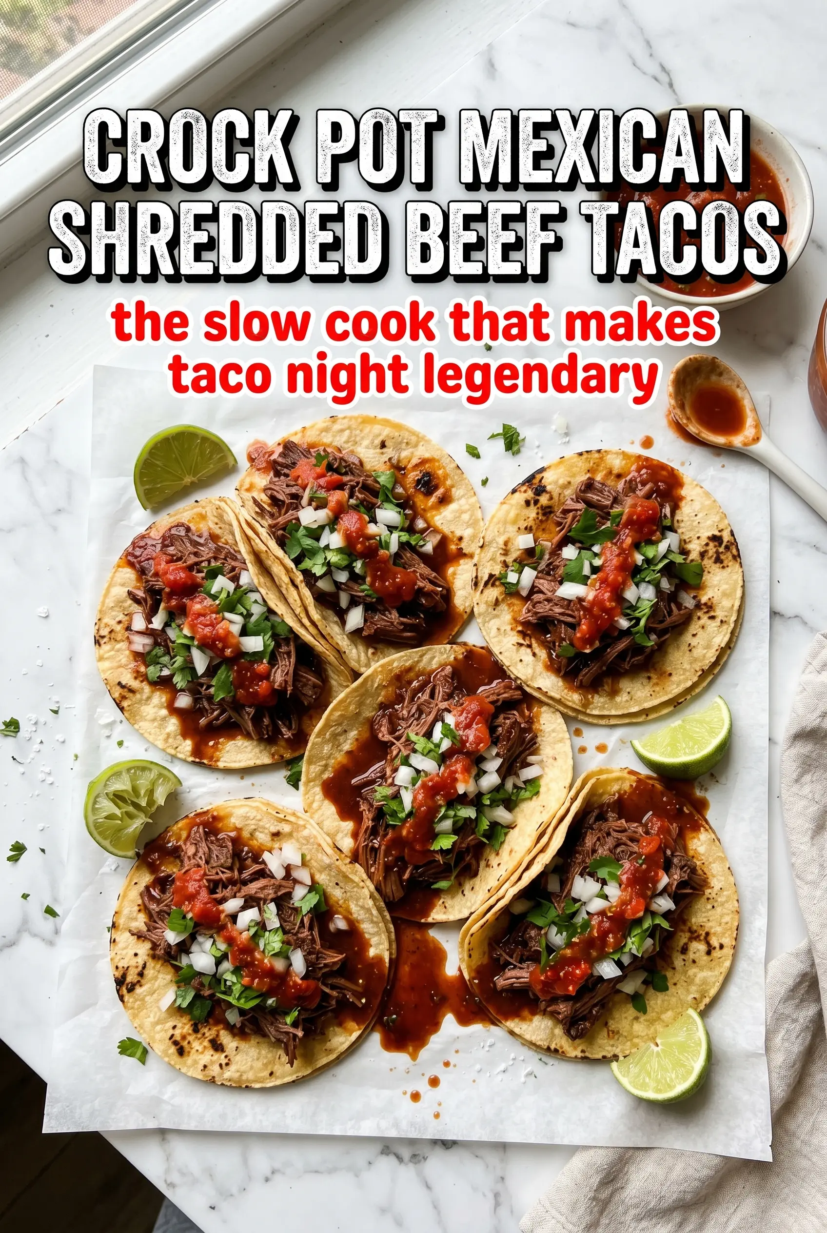 Tender shredded beef tucked into warm tortillas is one of those dinners that disappears fast, especially when the meat has spent all day soaking up cumin, oregano, garlic, and lime. The slow cooker does the heavy lifting here, but the flavor tastes layered, not flat. You get rich beef, a little tang, and enough savory broth to keep every bite juicy.