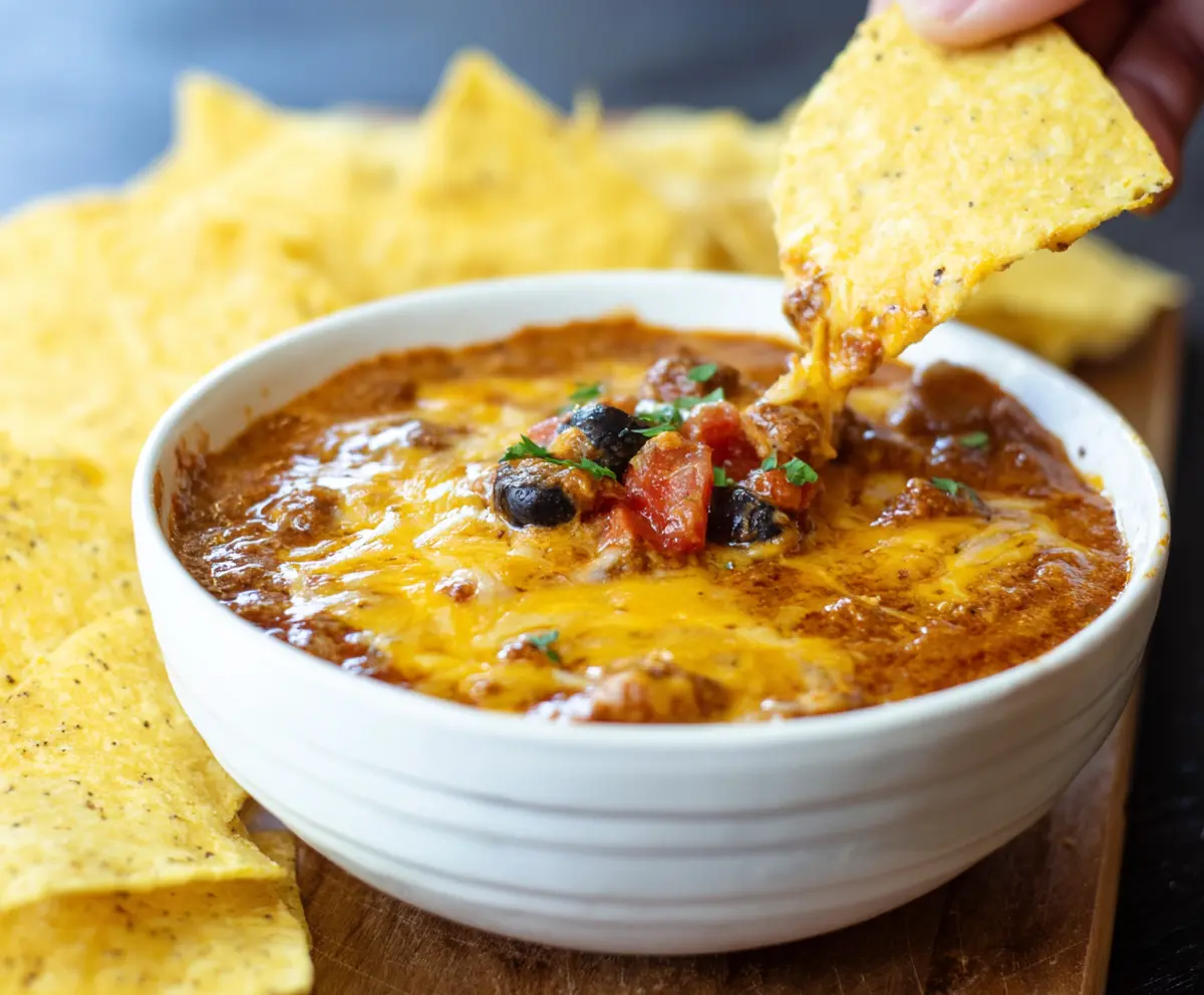 I can’t resist the gooey cheese and spicy chili combo. Perfect with tortilla chips, it’s like a warm hug in a bowl! Who’s ready to dip in? 😄