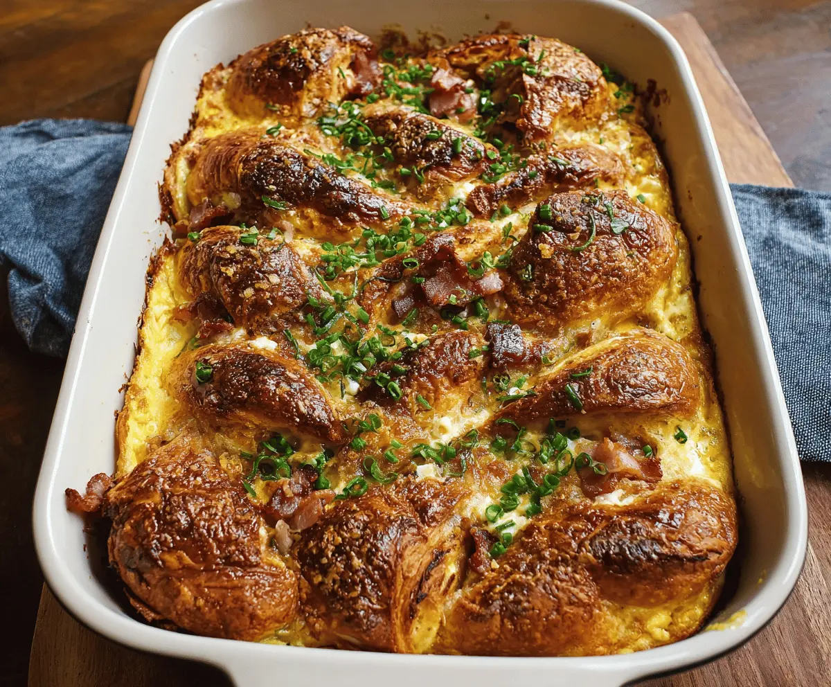 This Croissant Breakfast Casserole is a warm, cozy dish that’s perfect for mornings. Soft croissants soak up creamy eggs and cheese, making each bite a tasty treat!