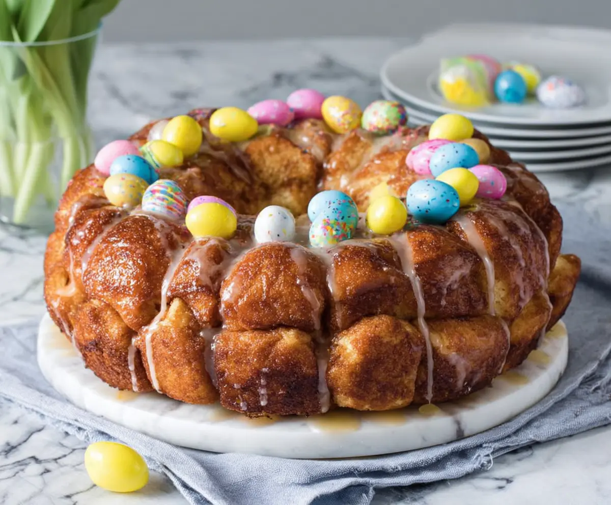 This delightful monkey bread takes about 15 minutes to prep and 35-40 minutes to bake, plus an additional 10 minutes for cooling. Total time is roughly 1 hour. It’s perfect for an Easter brunch and super fun to share!