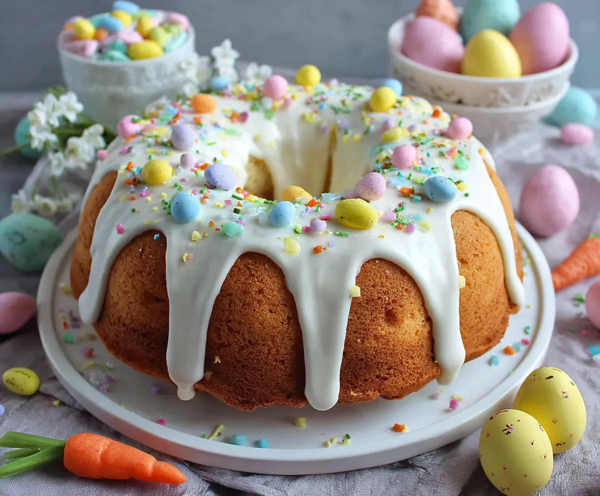 Allow the icing to set for a bit before slicing and serving. Enjoy your beautiful and festive Easter Bundt Cake—perfect for sharing with family and friends!