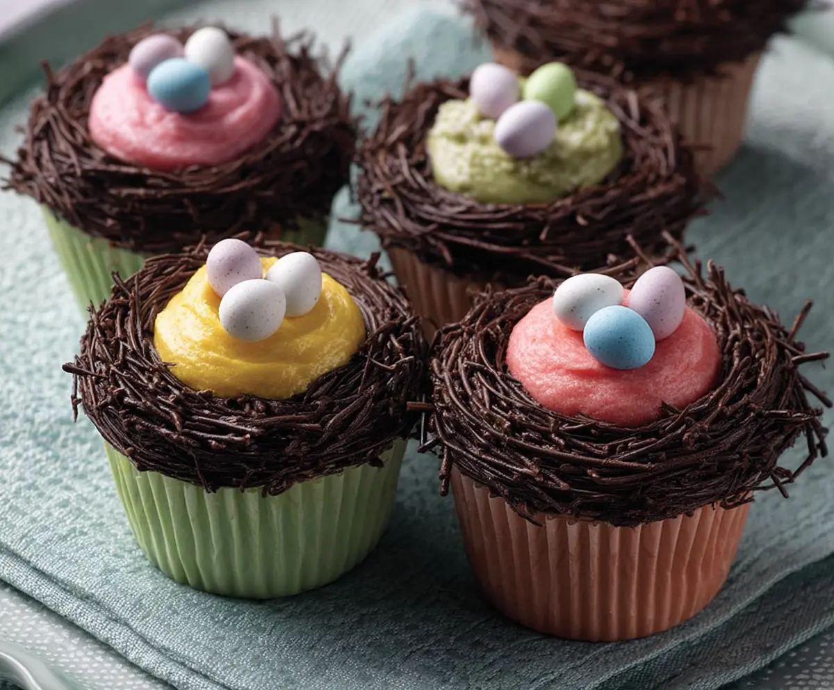 These fun Easter Egg Nest Cupcakes are a sweet delight! Topped with creamy frosting and colorful candy eggs, they look like little nests ready for springtime festivities.