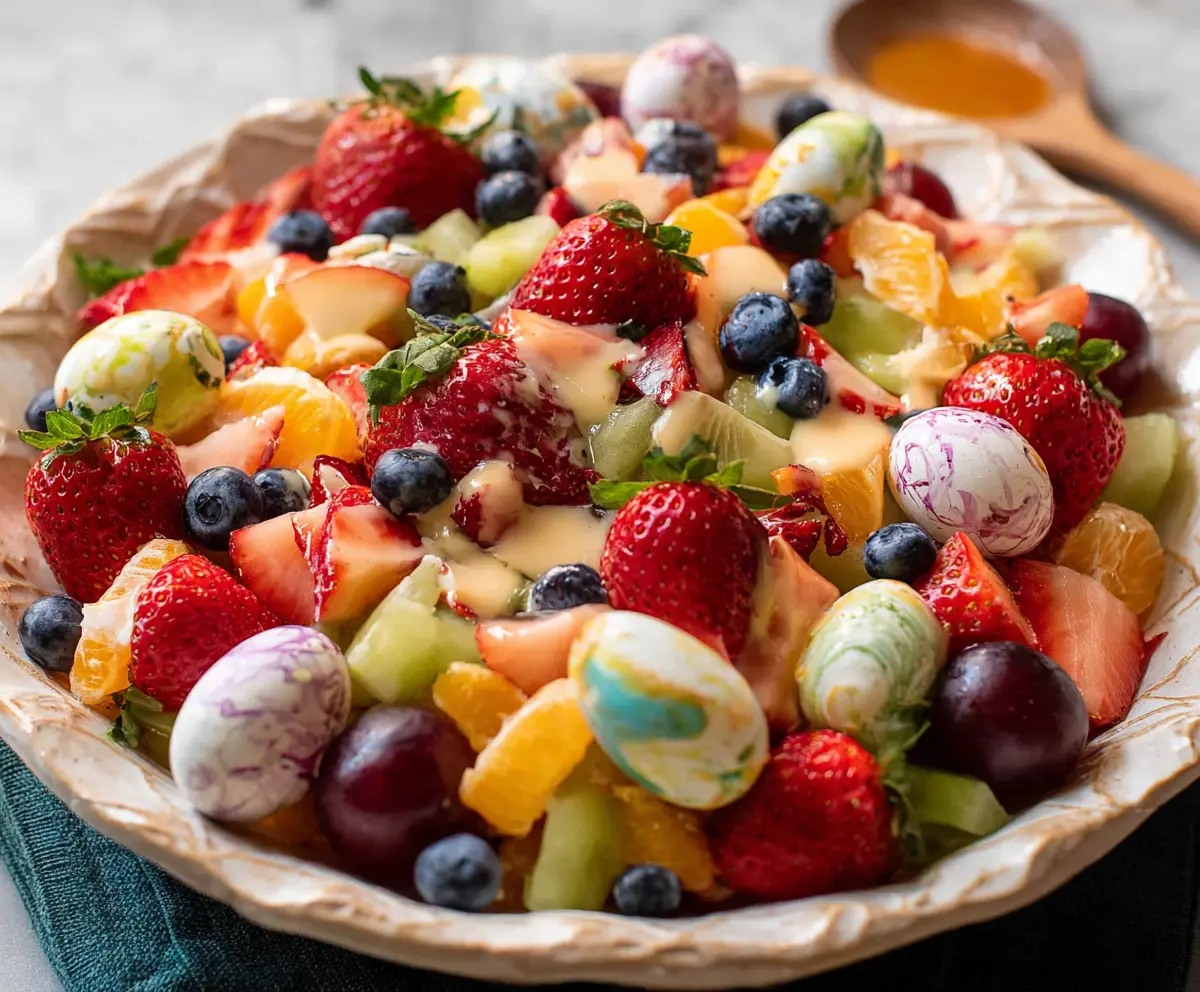 This colorful Easter Fruit Salad is a fun and fresh mix of juicy fruits like berries, melons, and citrus. It’s perfect for spring celebrations and adds a pop of color to your table!