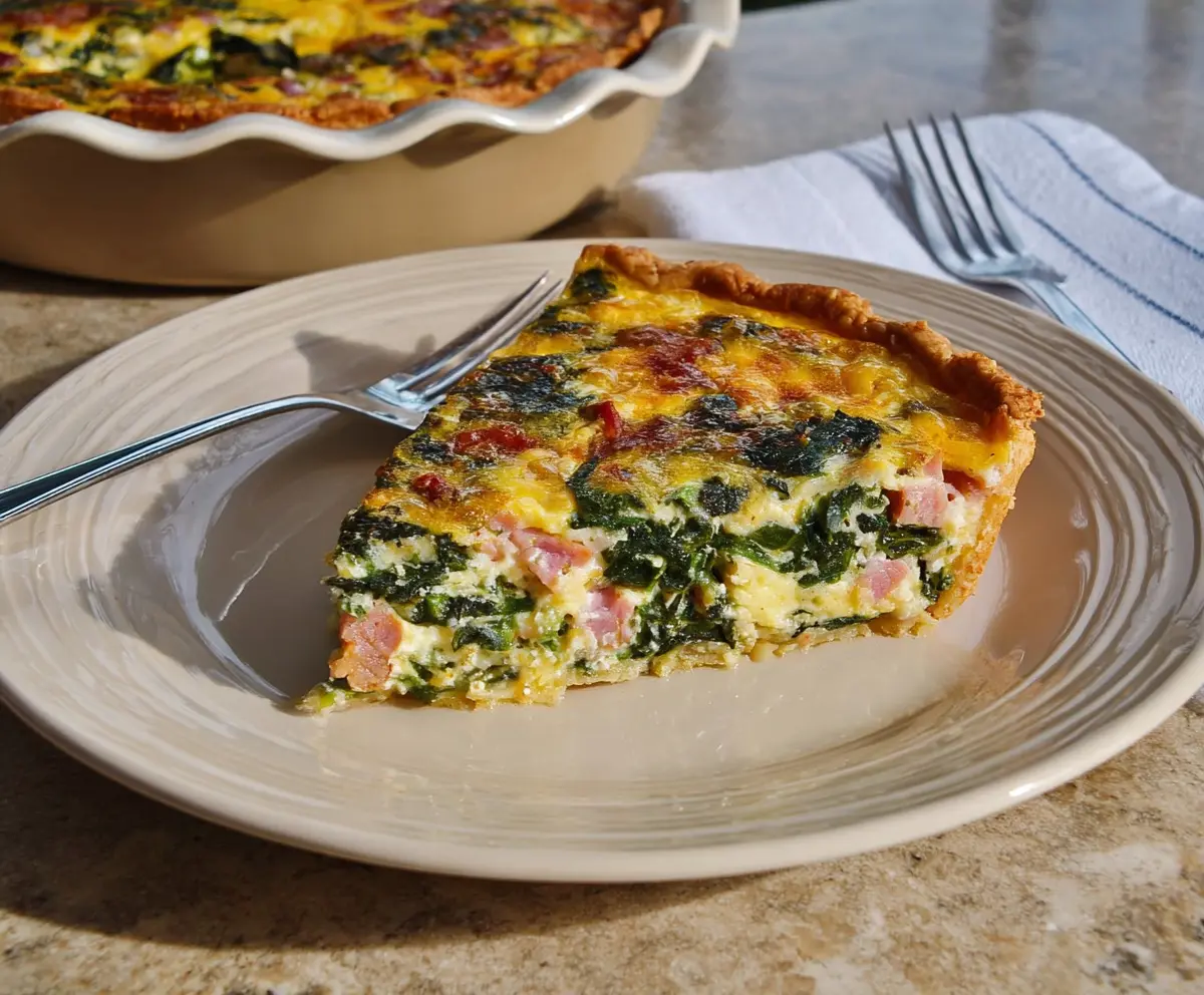 This Easter Ham and Spinach Quiche is a tasty dish that’s perfect for gatherings. It has creamy eggs, salty ham, and fresh spinach all baked in a crispy crust!