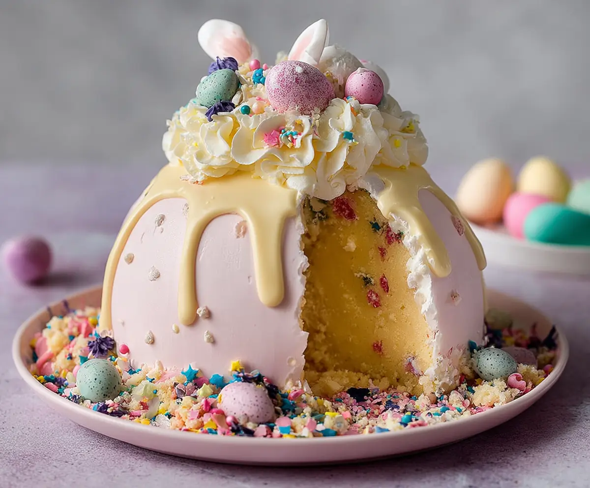 This Epic Easter Egg Smash Cake is a fun treat that’s perfect for celebrations! It features layers of fluffy cake filled with colorful candies and a surprise candy egg on top!