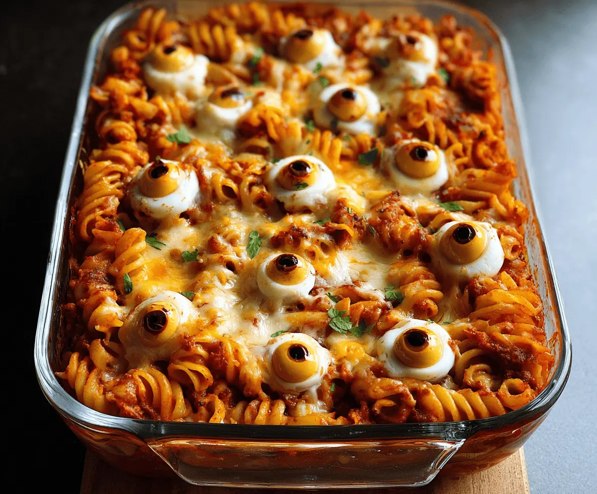 This delightful Eyeball Pasta Bake takes about 15 minutes to prepare and 30 minutes to bake, for a total of about 45 minutes from start to finish. Perfect for a quick family dinner that adds a spooky touch to your mealtime!