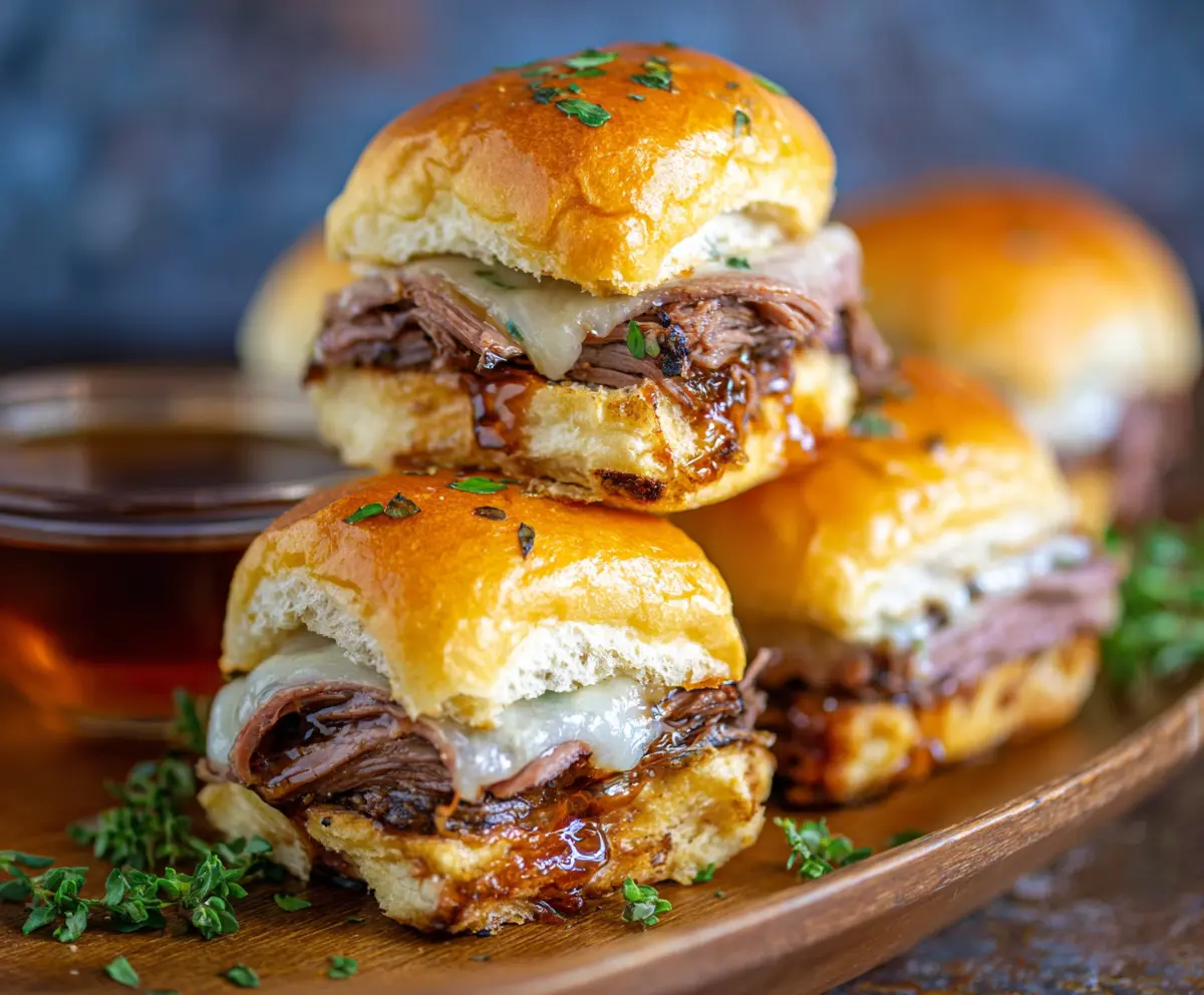Enjoy your lovely French Dip Sliders, filled with tender beef, gooey cheese, and a delightful broth dip—perfect for gatherings or cozy nights in!