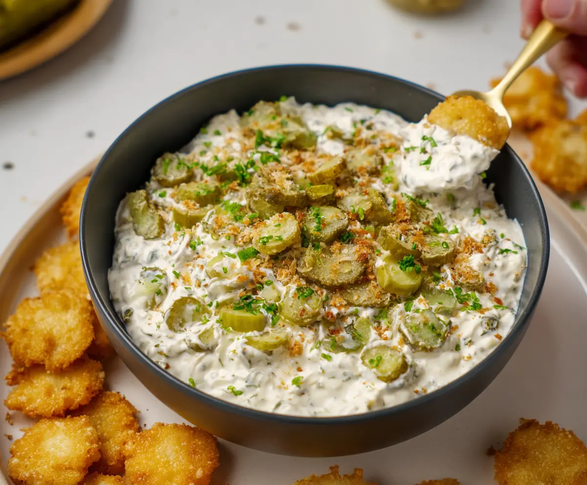 Enjoy this creamy, tangy dip with its crunchy fried pickle bites—it’s sure to be a hit at any gathering!