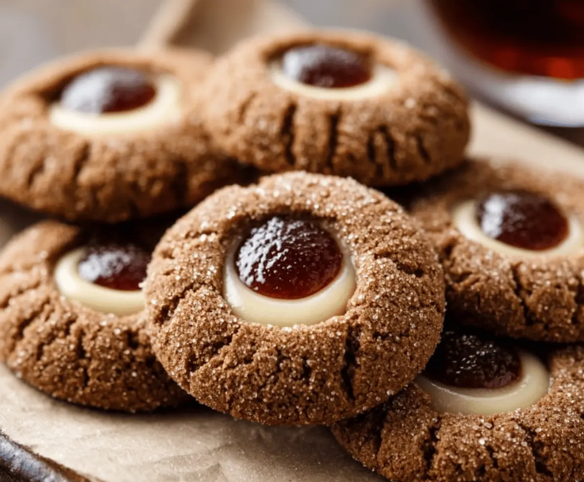 These Gingerbread Thumbprint Cookies will warm your heart and fill your home with sweet aromas! Enjoy the cozy flavors of gingerbread in every bite!
