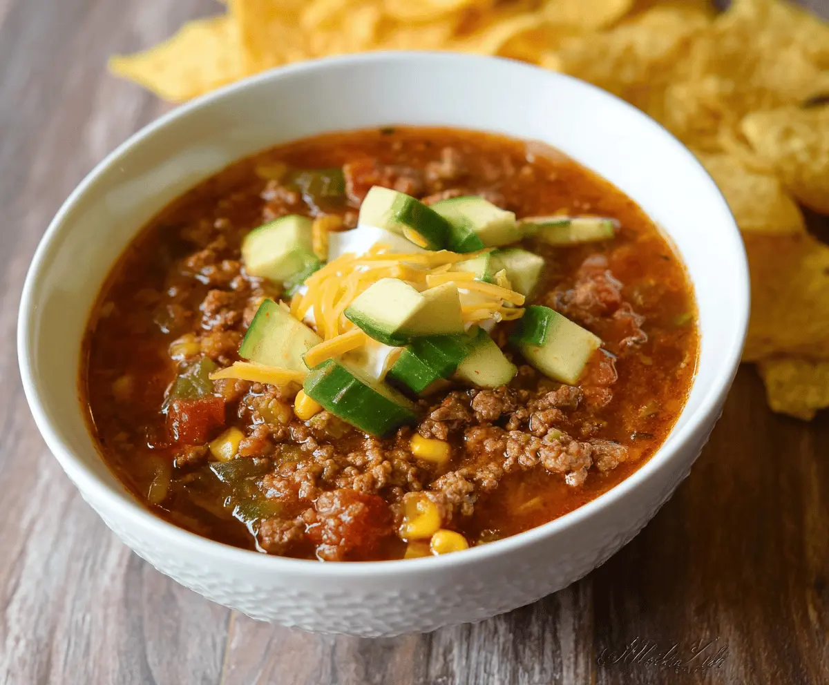 Serve your taco soup immediately, with gluten-free tortilla chips on the side or sprinkled on top for a nice crunch. Enjoy your warm, hearty, and flavorful gluten-free taco soup!