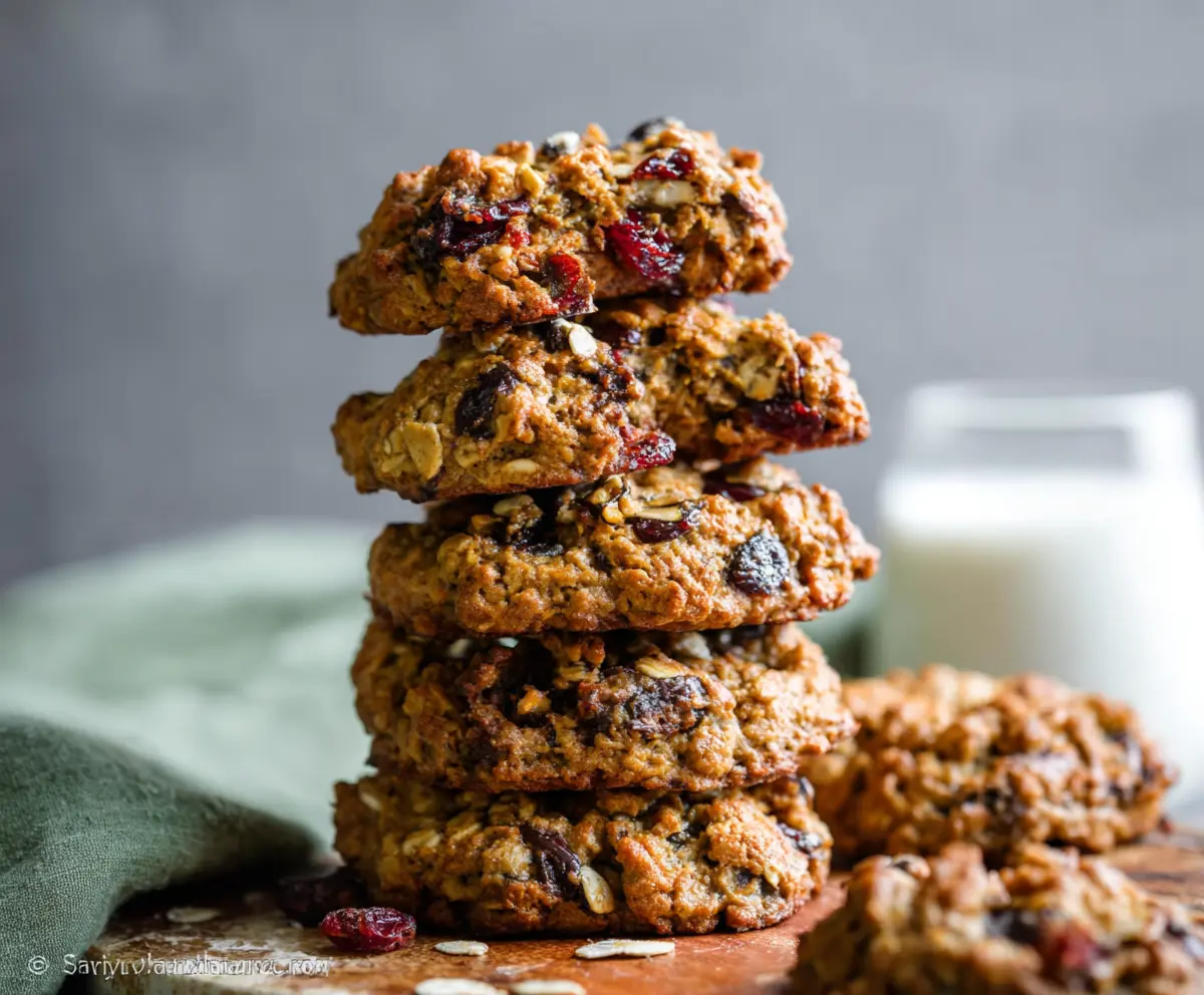 These cookies are a nutritious treat, filled with fiber and energy-boosting goodness from oats, seeds, and fruit. Happy baking! 🍪