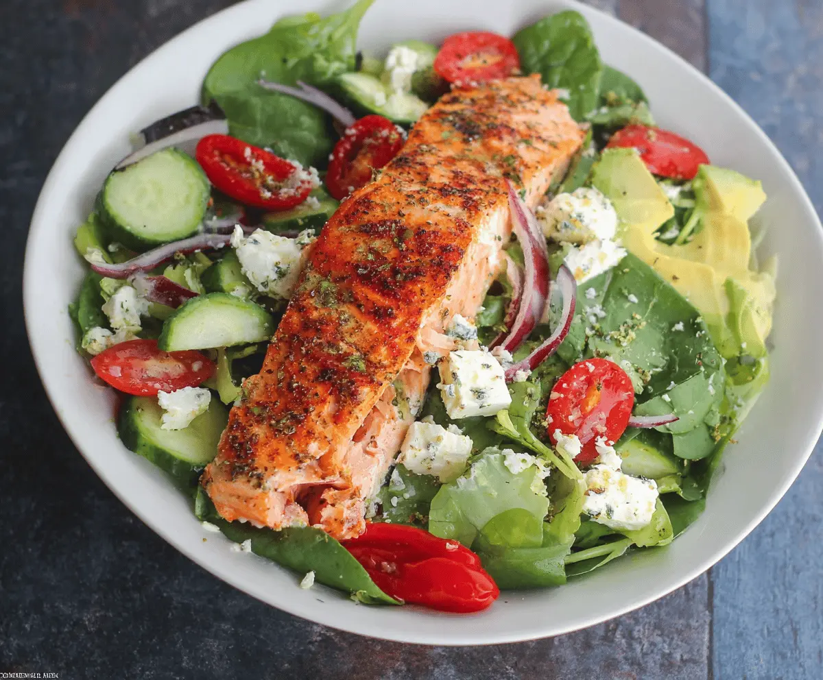 This Healthy Salmon Salad is packed with fresh greens, juicy tomatoes, and tasty salmon. It’s light yet filling, perfect for lunch or a light dinner!