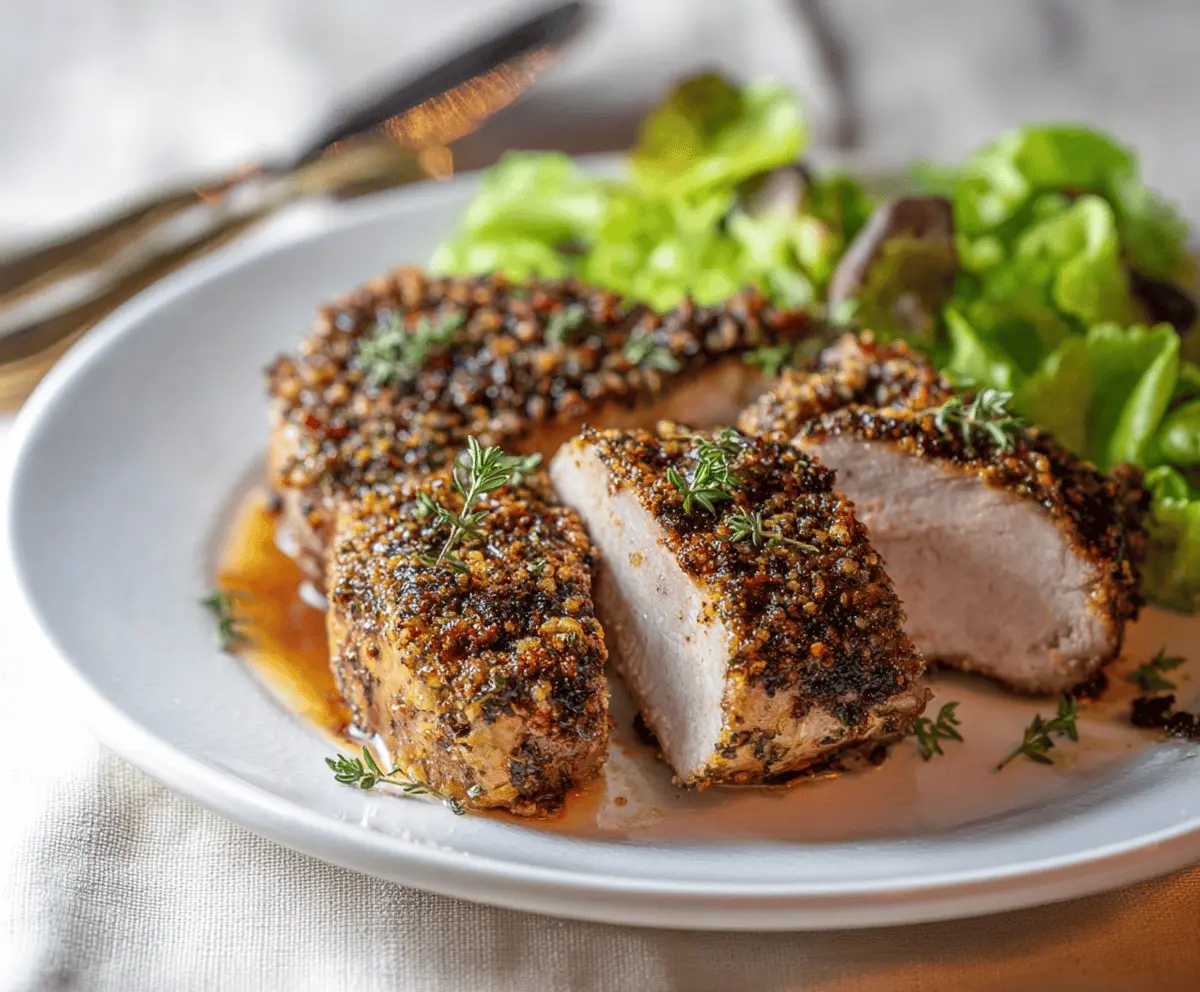 Absolutely! You can prepare the herb crust and coat the pork chops earlier in the day. Just store them in the fridge until you’re ready to cook. If you’re making them the next day, let them sit at room temperature for about 30 minutes before searing.