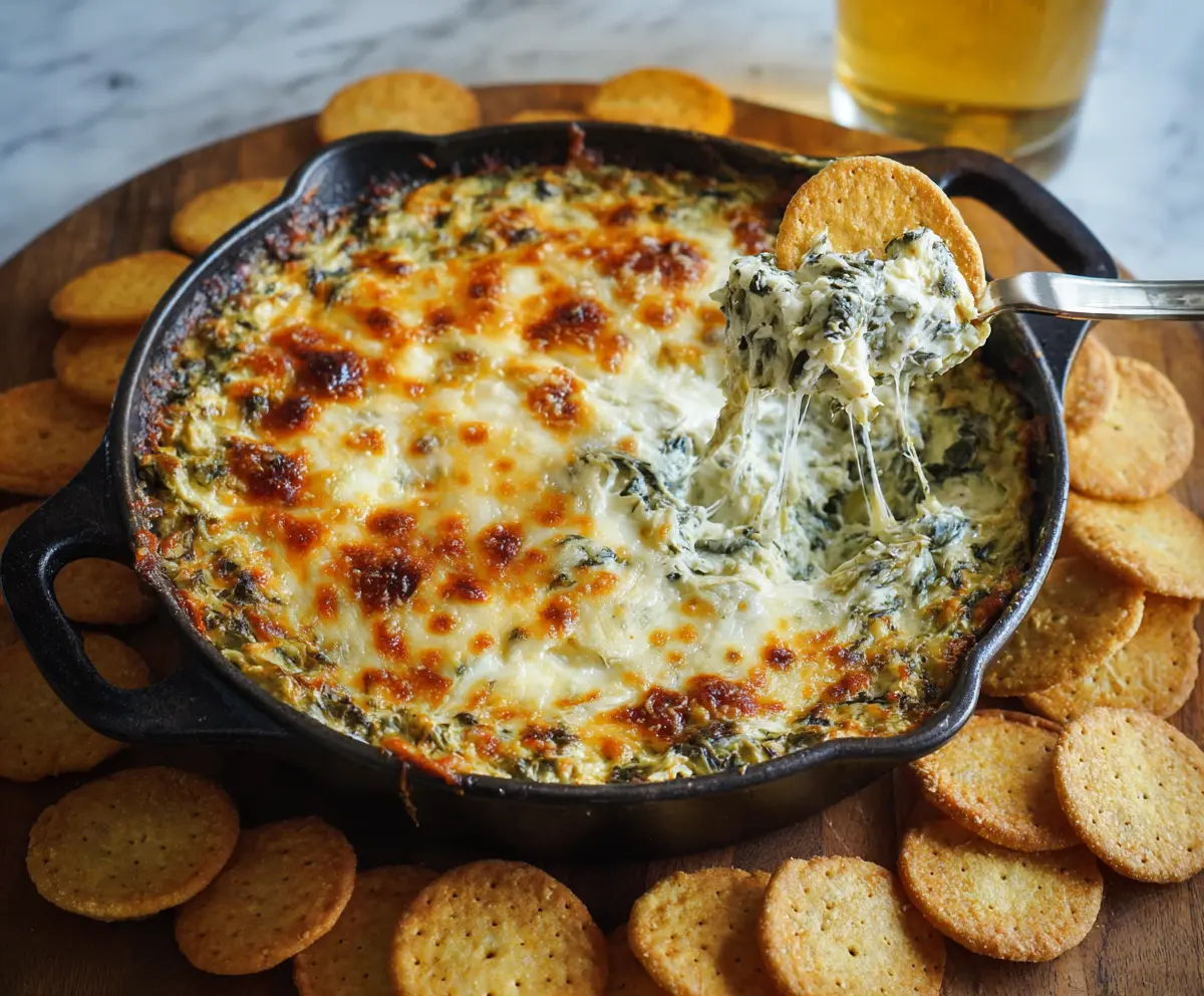 This hot spinach artichoke dip is creamy, cheesy, and oh-so-warm! It’s made with fresh spinach, artichokes, and lots of gooey cheese, perfect for dipping.
