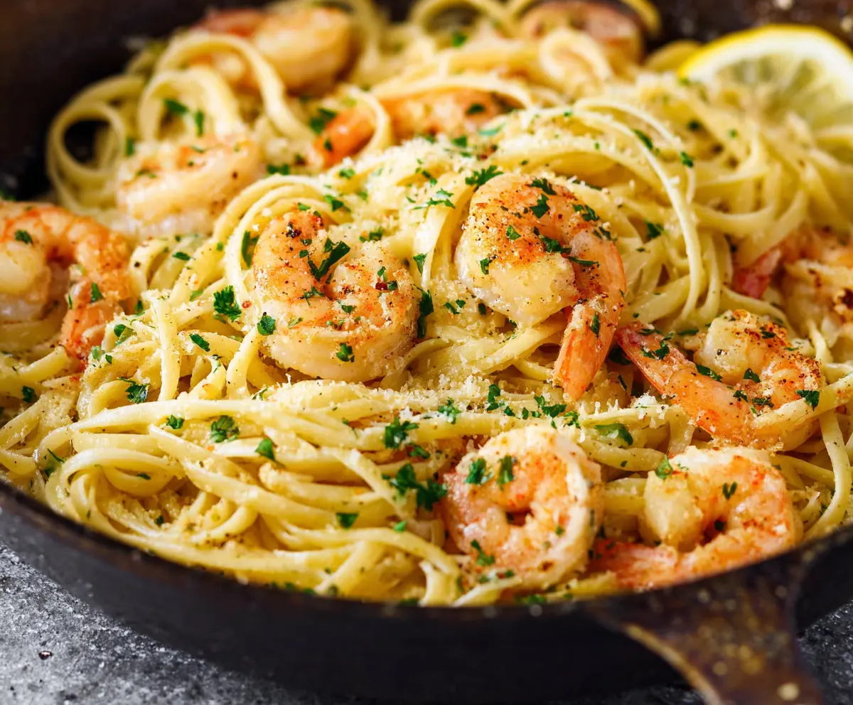 Taste your dish and adjust with more salt, pepper, and lemon juice if needed. Once you’re happy, remove the skillet from the heat. Sprinkle chopped parsley and grated Parmesan cheese over the pasta. Serve your Linguine Shrimp Scampi warm with lemon wedges on the side for an extra burst of flavor.