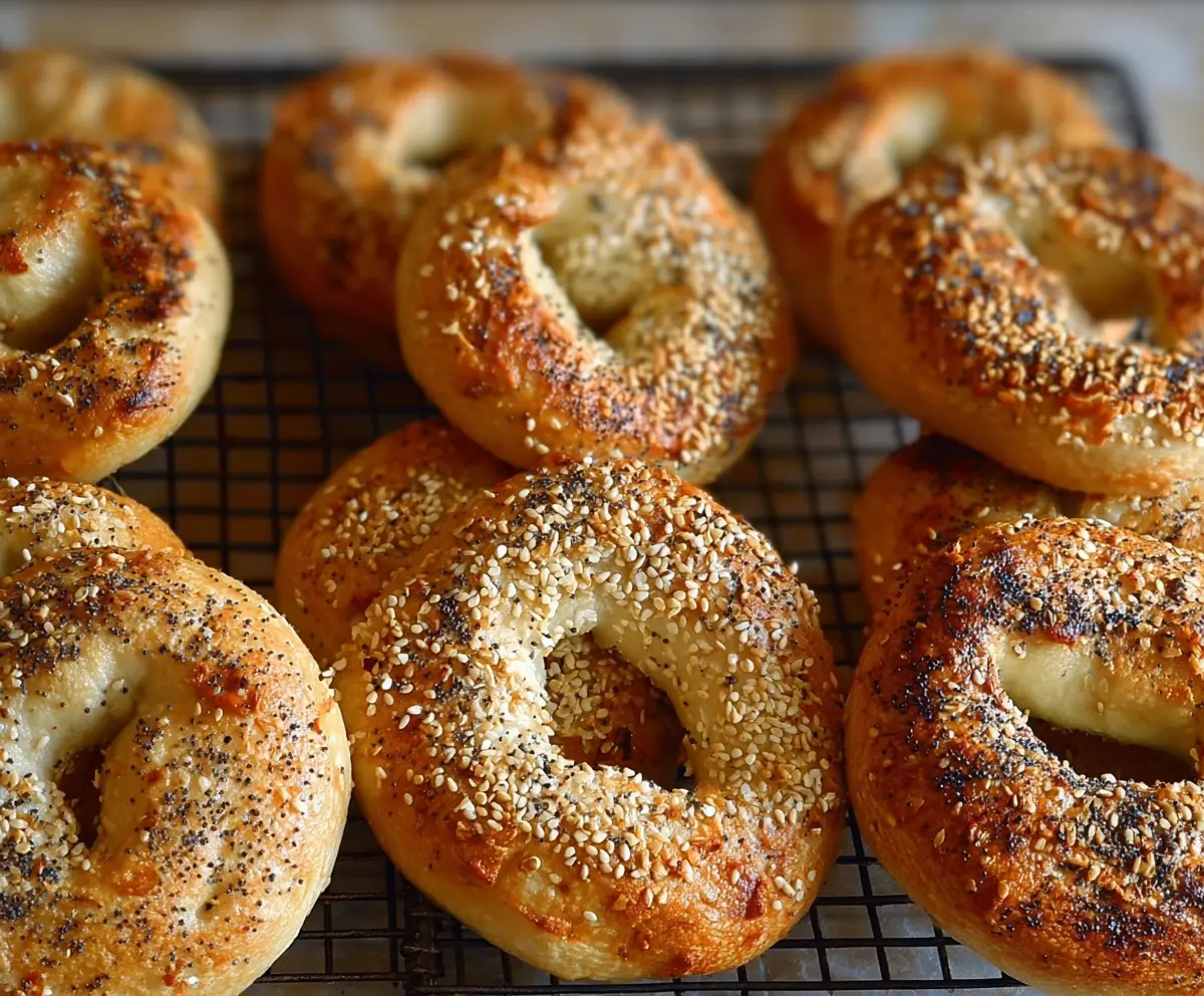 This recipe will take about 2.5 to 3 hours in total. That includes about 30 minutes for preparing and shaping the bagels, and 1 to 1.5 hours for the dough to rise, followed by 20-25 minutes of baking. The wait will be worth it for delicious homemade bagels!