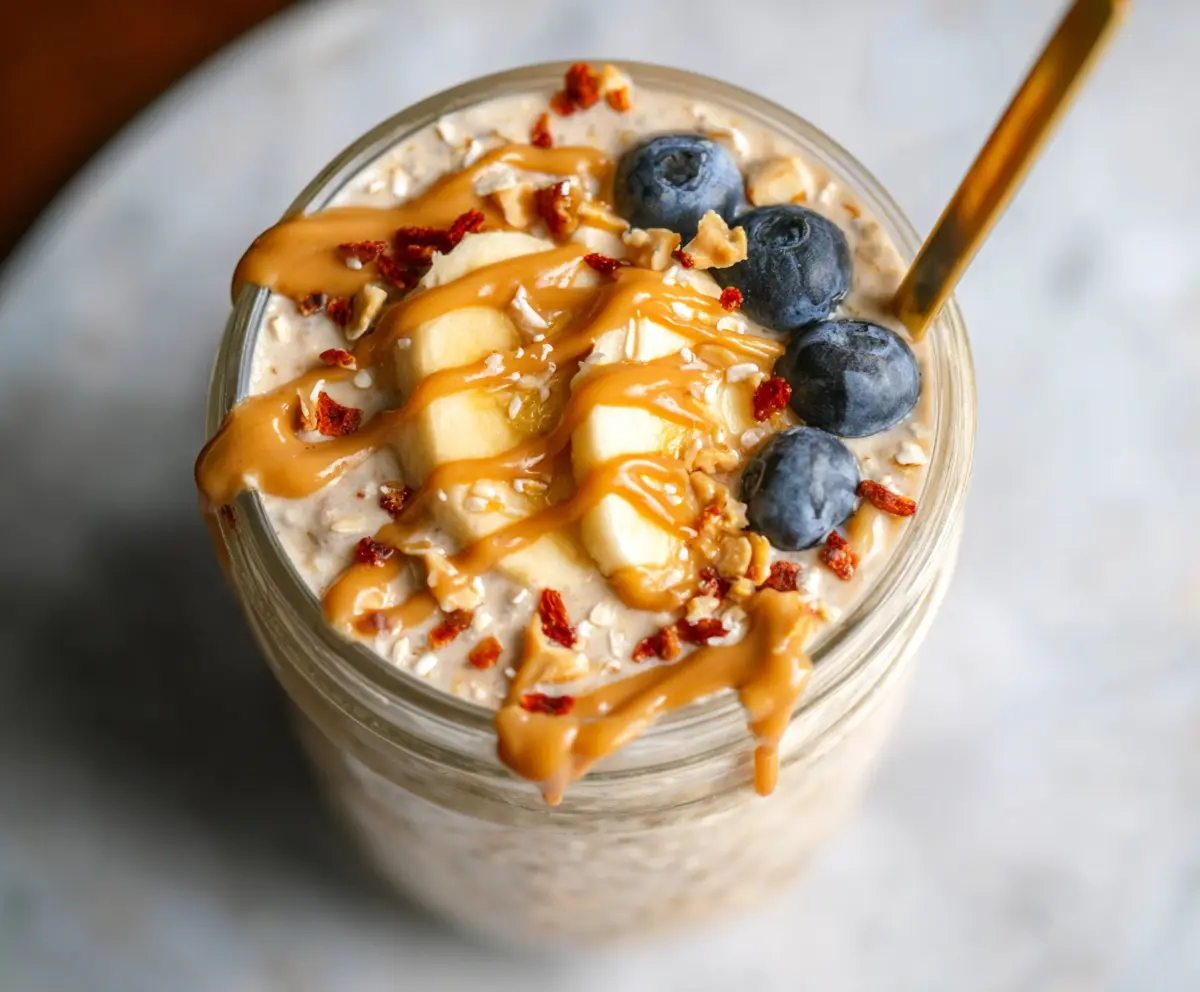 Peanut butter overnight oats are a super easy breakfast that’s both creamy and filling. Just mix oats, your favorite milk, and peanut butter, and let them sit overnight!
