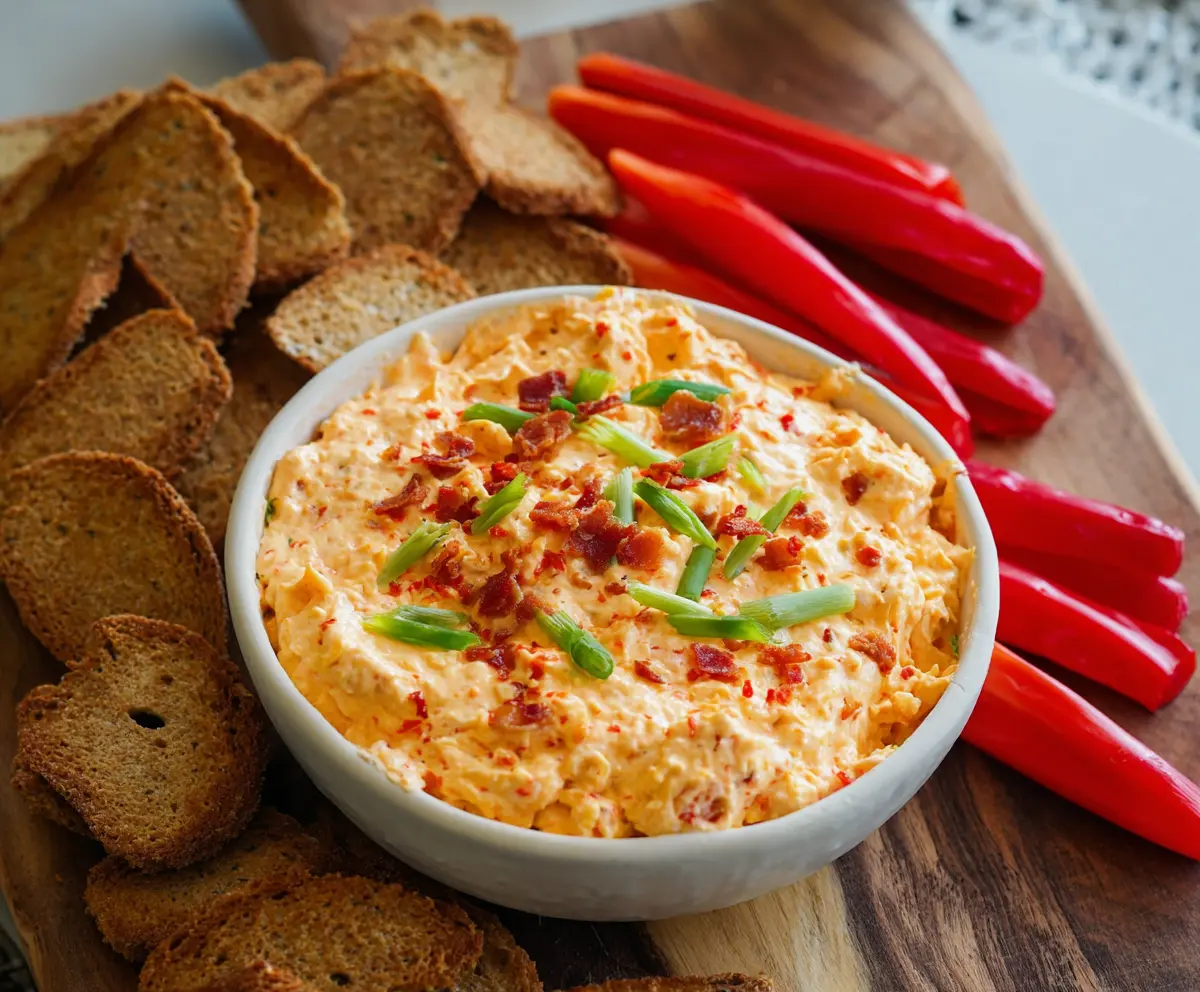 This creamy Pimento Cheese Dip is a real crowd-pleaser! Made with smooth cream cheese, tangy pimentos, and a sprinkle of spices, it’s perfect for dipping.