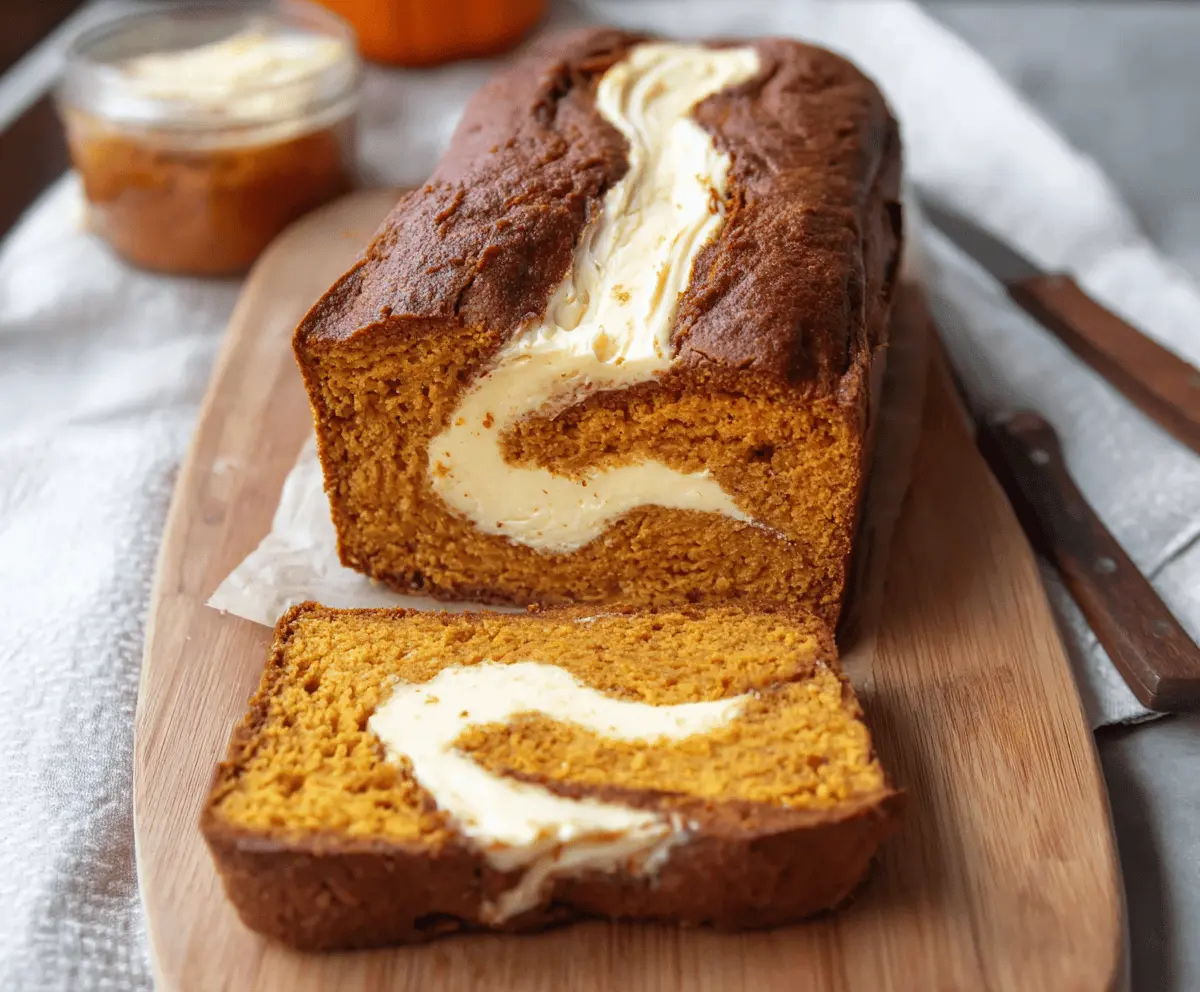 This Pumpkin Cream Cheese Bread is a cozy treat perfect for fall! It mixes soft pumpkin goodness with creamy cheese for a sweet surprise in every slice.