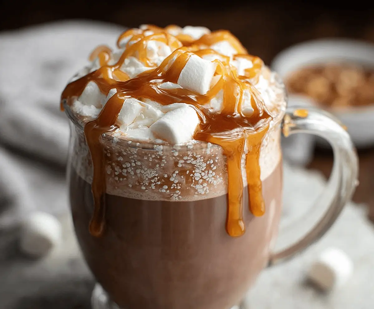 This cozy salted caramel hot chocolate is a warm hug in a cup! Rich chocolate mixed with smooth caramel creates a sweet and salty treat that’s perfect for chilly days.