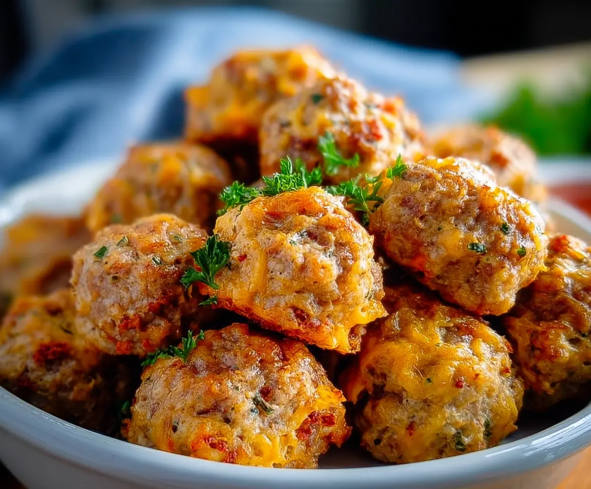 These tasty, cheesy sausage balls are sure to be a hit—enjoy every bite!