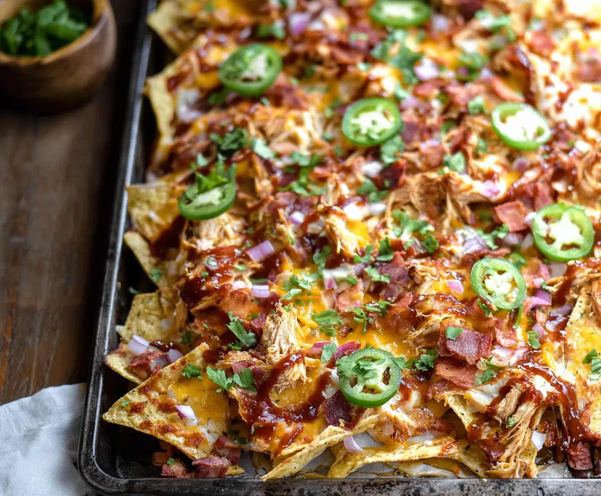 Enjoy your delicious Sheet Pan BBQ Chicken Nachos—they are sure to be a hit!