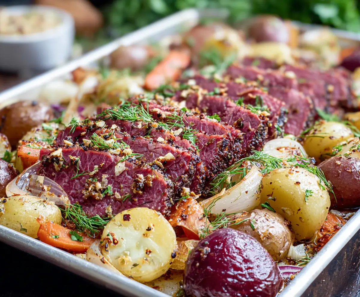 Enjoy your hearty, flavorful sheet pan corned beef meal!