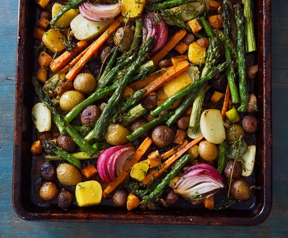 • Consider starting with denser vegetables (like potatoes) first, then adding quicker-cooking ones (like asparagus) later, as outlined in the recipe.