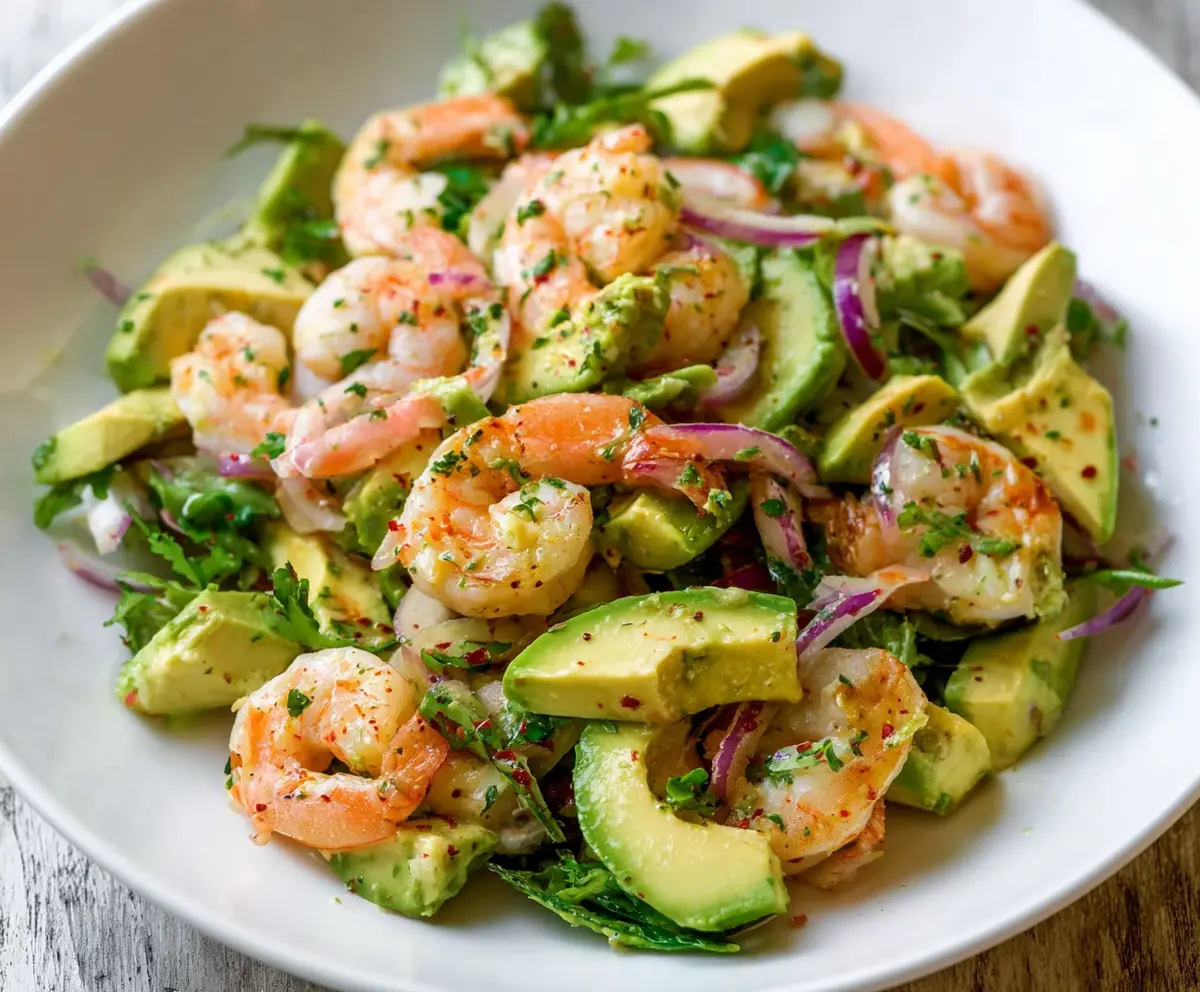 This salad brings together the delightful taste of shrimp, the richness of avocado, and the crispness of fresh greens, all highlighted by a zesty dressing. Perfect for any meal!