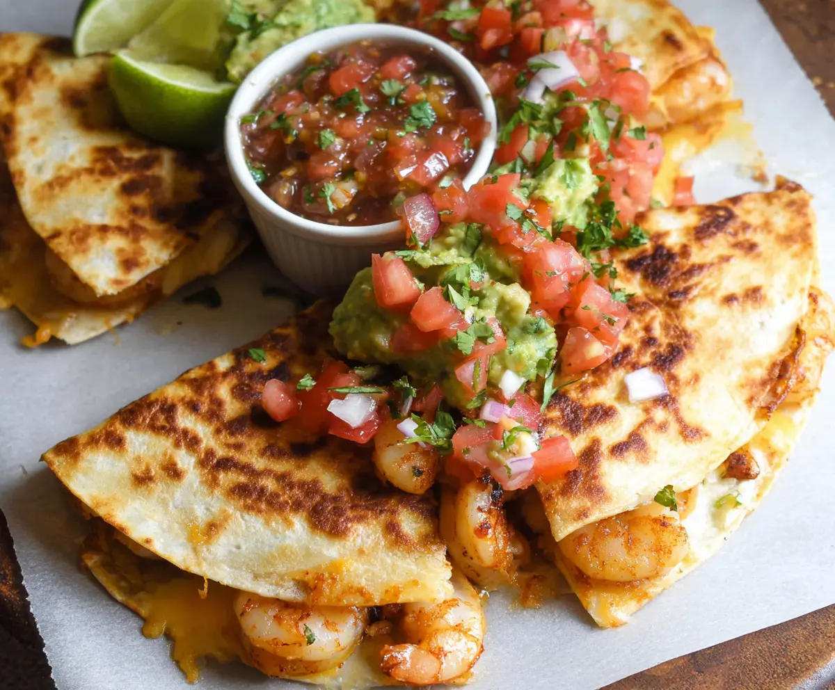 These shrimp quesadillas are quick and tasty! Filled with juicy shrimp and melted cheese, they make a perfect snack or meal. Just grill them until golden and crispy!