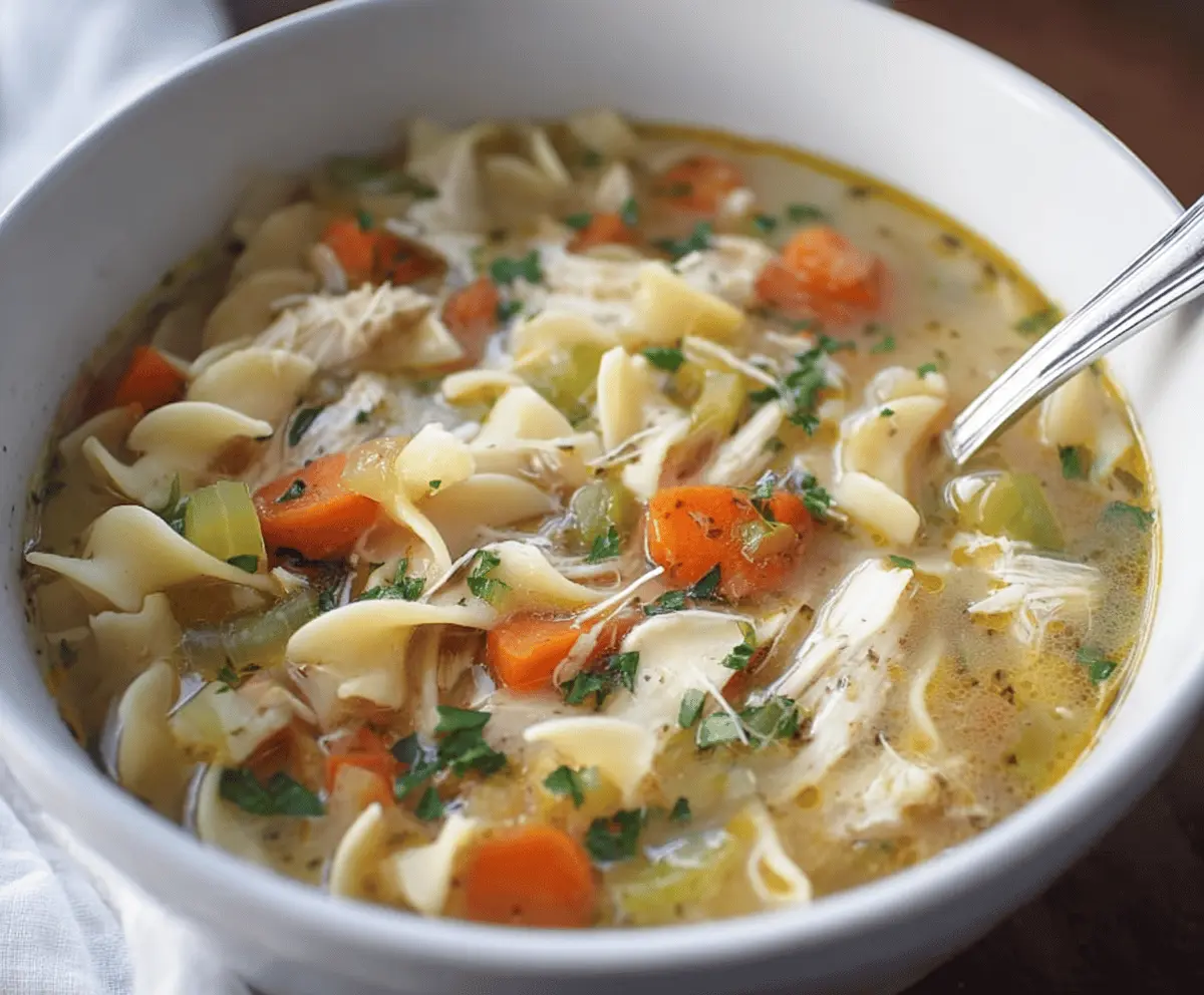 This Slow Cooker Chicken Noodle Soup is a warm hug in a bowl! It’s filled with tender chicken, soft noodles, and tasty veggies, all simmered to perfection while you relax.